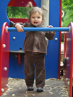 At the playground near our house - first pigtails!